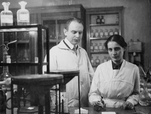 Lise Meitner (right) and Otto Hahn (left), Courtesy of The Conversation US.